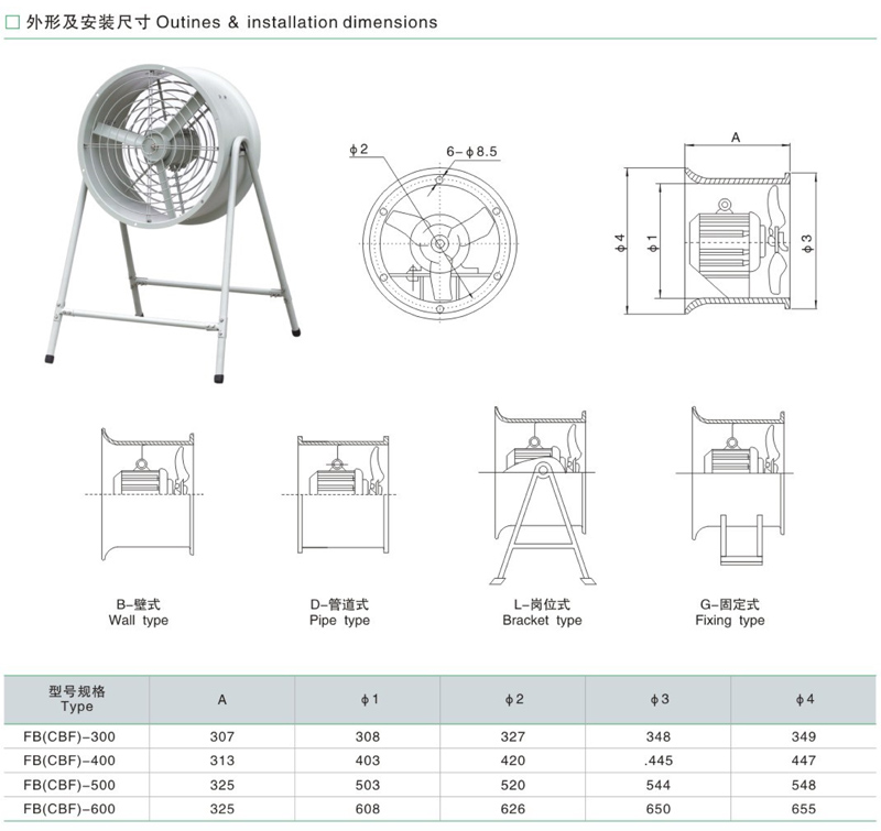 1.本產品由防爆電機、葉片、風筒等組成,葉片由鑄鋁合金制成,風筒由鋼板制成。